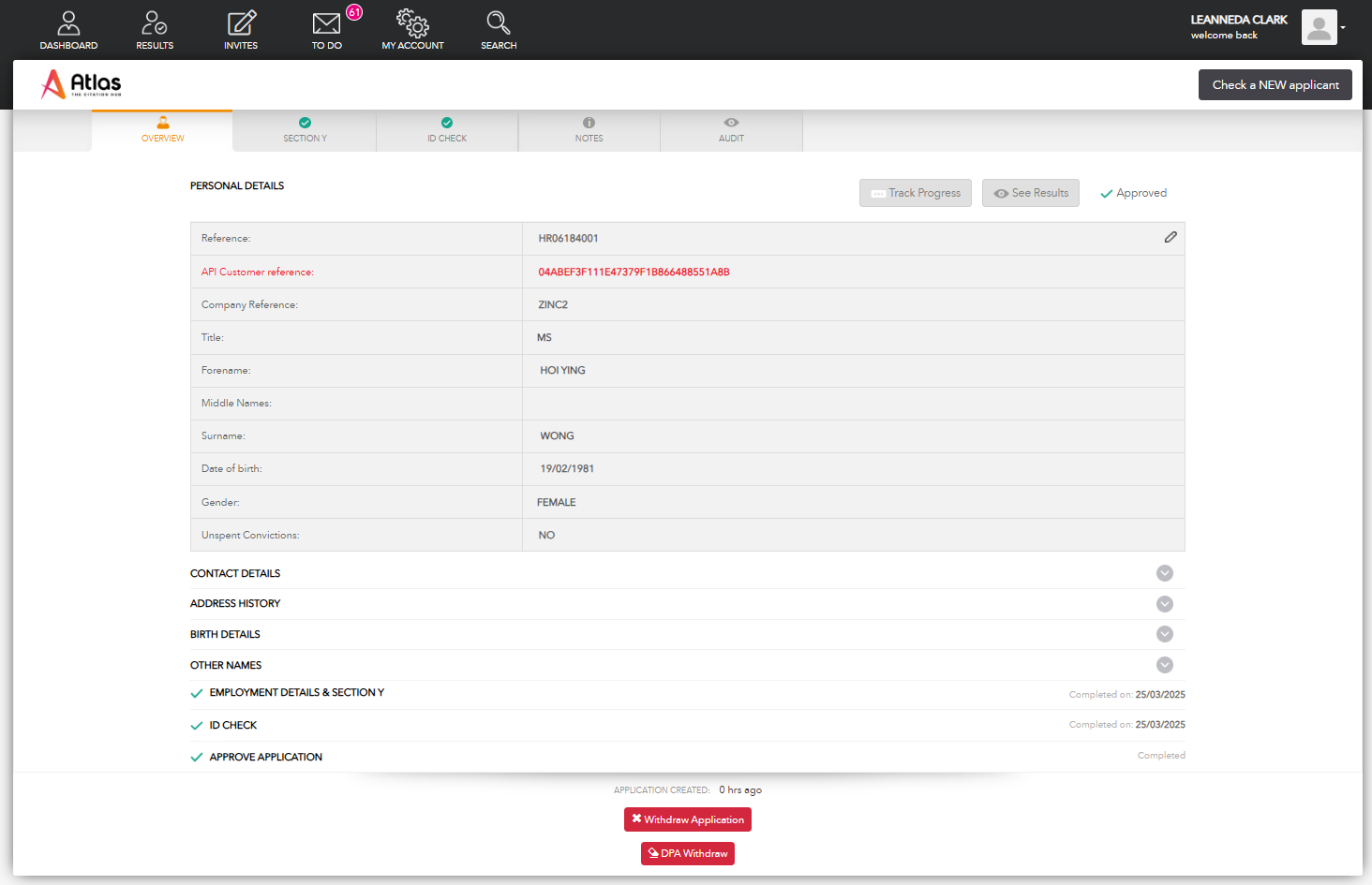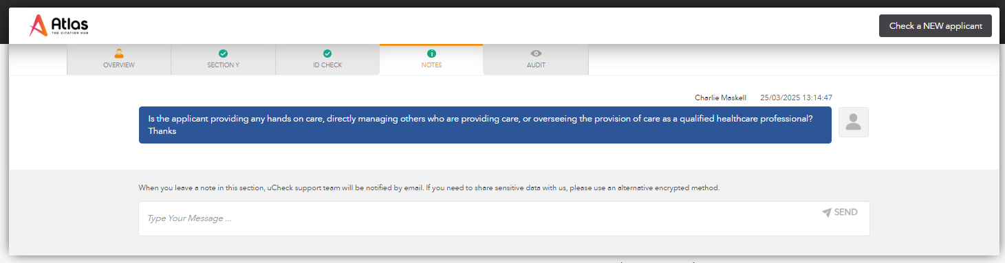 For standard and enhanced checks, the applicant must meet the DBS criteria to be checked. If we do have to query an application, we will update the note section of the application. An email notification will be sent when this happens.